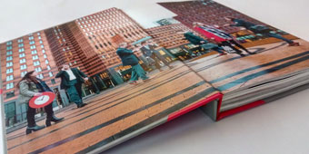 Ein Jahrbuch, gebunden wie ein richtiges Buch mit hartem Einband. Der Umschlag wird nur einseitig bedruckt. Auch ein Endlosdruck ist mit dieser Option möglich. Bei einem Hardcover-Buch wird das Umschlagpapier auf dicken Karton geklebt. Dadurch ist die Abdeckung nicht flexibel. Es sind verschiedene Formate möglich. Von A4 bis A5 hoch und A5 quer. Oder wählen Sie eines der anderen Formate: 170x240 mm (These) oder 210x210 mm. Der Umschlag wird immer in Farbe gefertigt und mit einem Glanzlaminat versehen. Für die Innenseite haben Sie die Wahl zwischen Schwarz-Weiß- und Vollfarbdruck..